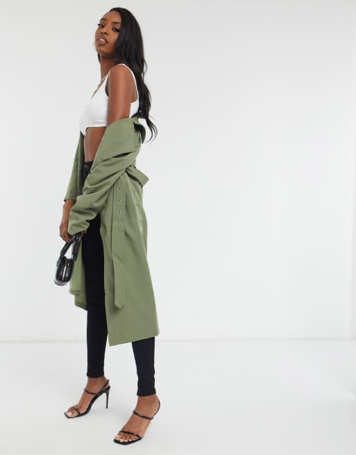 Khaki green best sale duster coat