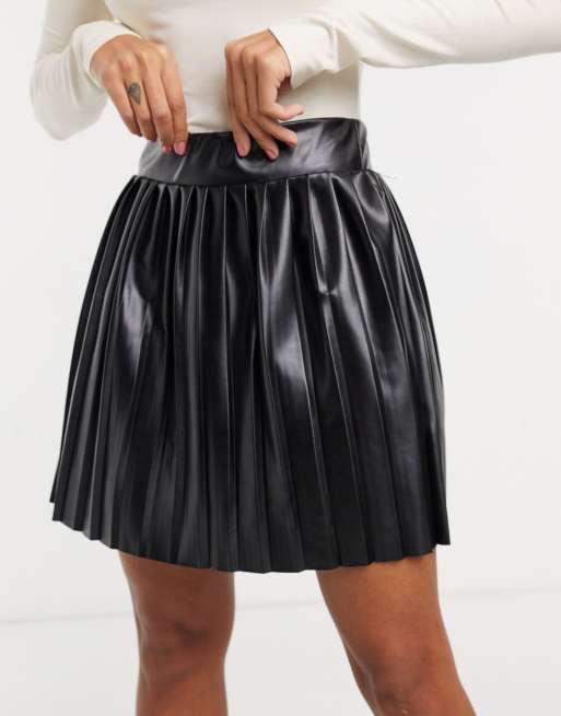 Short pleated best sale leather skirt